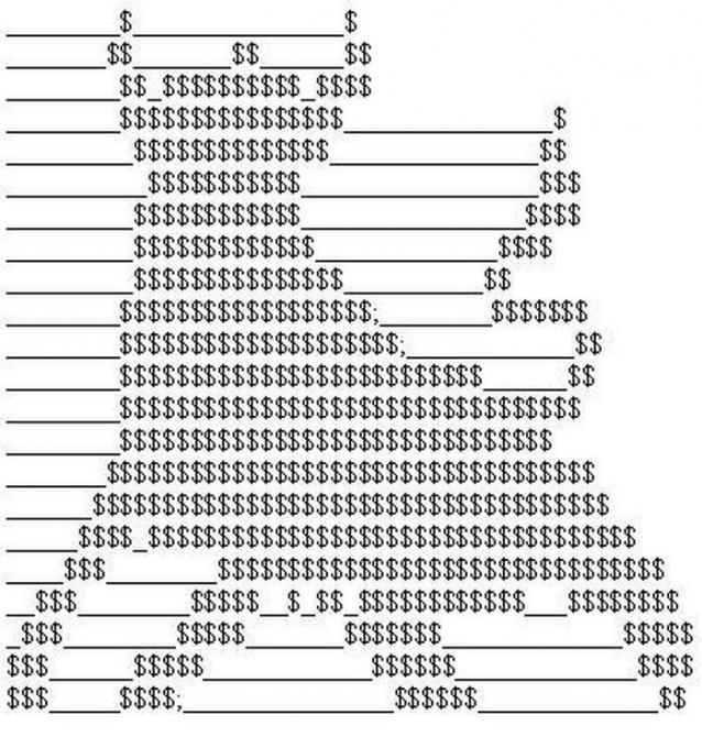 Все большое и трудное зачастую состоит из простых частей. Приятный пример это красивые рисунки из знаков, из обычных черточек и всевозможных знаков получаются витиеватые изображения, как в данной статье. На уроке информатике за компом вы без заморочек можете повторить данные фото картинки.
