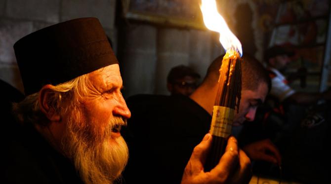 Священник с Благодатным огнем.
