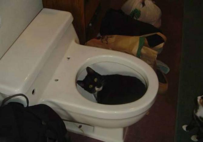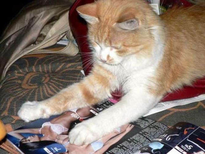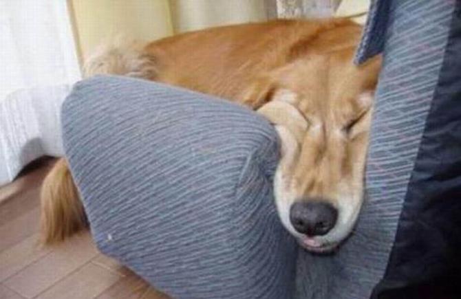 Собака и кот поменялись местами. Кот очевидно доволен.