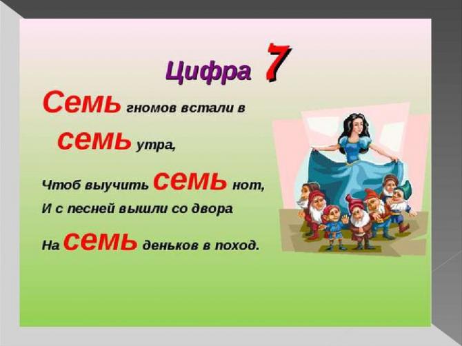 Семь гномов встали в сем утра, чтобы выучить семь нот.