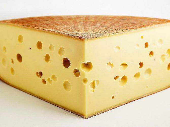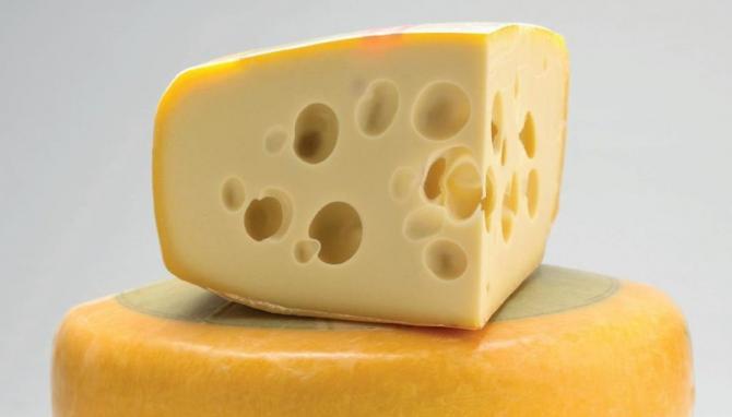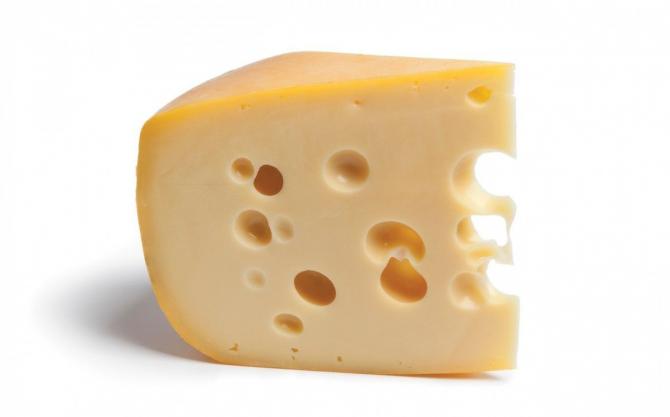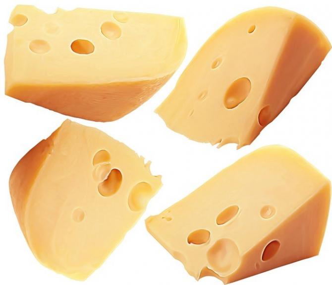Аппетитный сыр с дырочками.