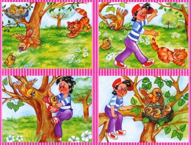 Сюжетные фото картинки помогут ребенку развить фантазию, логику и основное научат его развернутой речи. Чтобы использовать сюжетные фото картинки по максимум, разрежьте их, и попросите малыша разложить их в правильной последовательности, спросите какой логики он придерживался, потом пускай он опишет событие, которое происходит от фото картинки к картинке. А ваша задачка параллельно его сочинению по рисункам, задавать ему наводящие вопросы. Таковым образом сочиняя предложения по рисункам, и складывая из них целый сюжетный рассказ, дошкольник развивается и подготавливается к обучению не совсем лишь в первом либо втором классе, да и на всю жизнь.