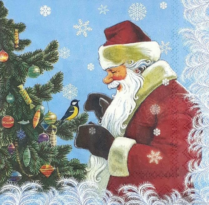 Дед Мороз усмехается синичке