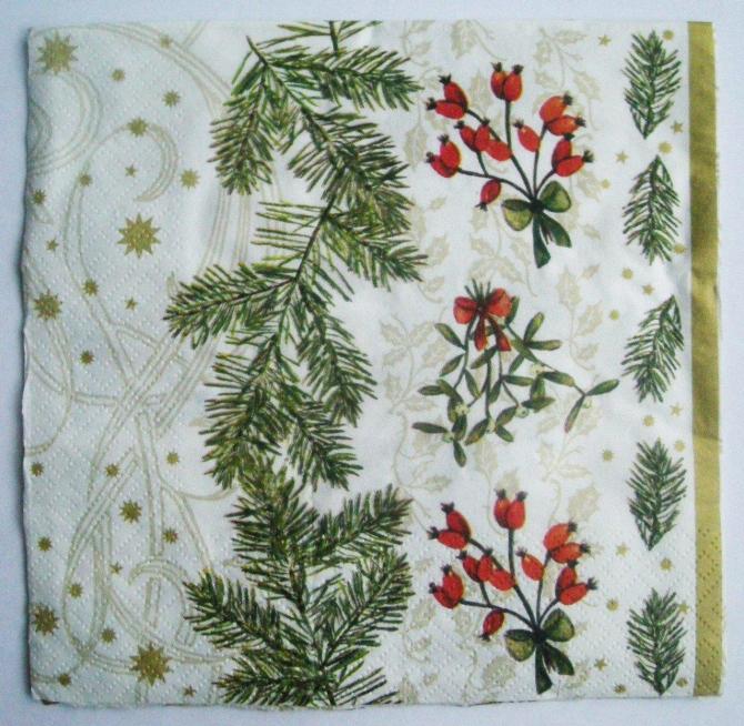 Веточка ели на салфетке