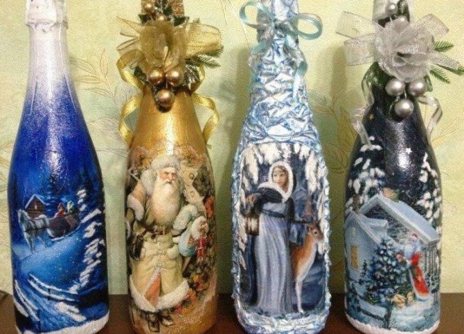 Бутылки с новогодними картинами