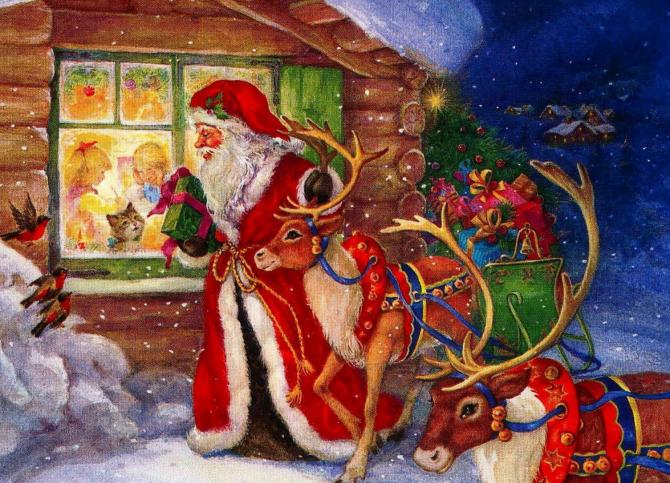 Санта Клаус в санях с дарами