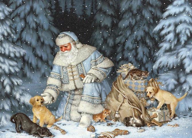 Дед Мороз с дарами для животных