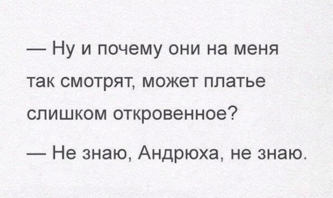 — Ну и почему она на меня так смотрят, может платьице очень искреннее?— Не знаю, Андрюха, не знаю