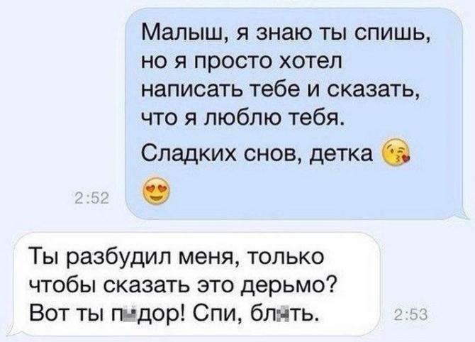— Как ты относишься к людям, которые непрерывно хочешь спать?— Я к ним отношусь.