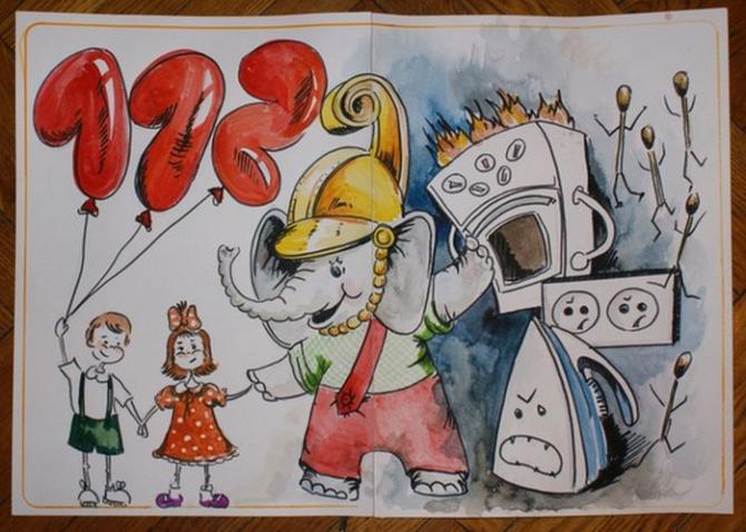 Ребяческие красивые рисунки пожарной сохранности. При пожаре звонить 01.