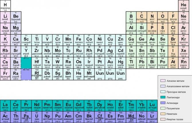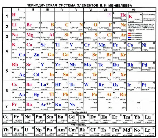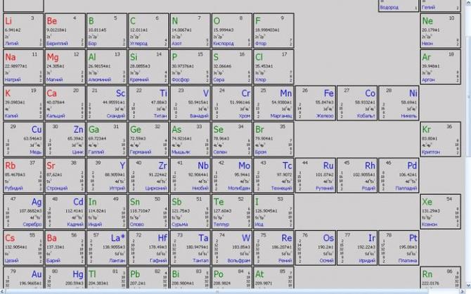 Периодическая система химических частей Д.И. Менделеева.
