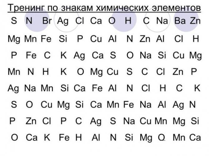 Тренинг по знакам химических частей.