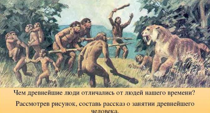 Чем древнейшие люди отличались от жителей нашей планеты нашего медли?Осмотрев набросок, составь рассказ о занятии старого жителя нашей планеты.