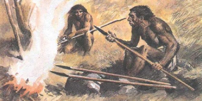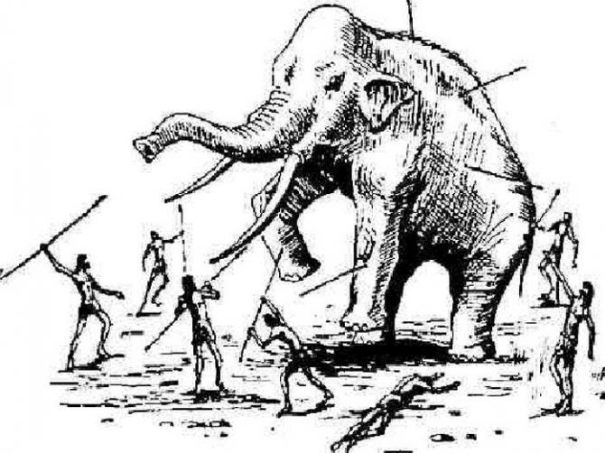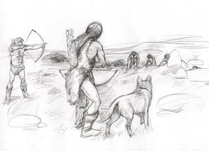Ребяческие красивые рисунки старого жителя нашей планеты на охоте.