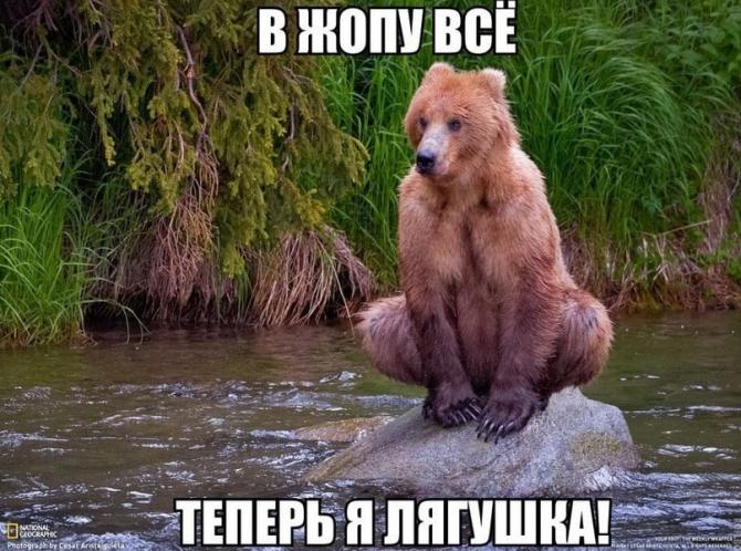 Картина про медведя с надписью.