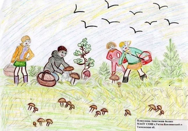 Набросок сбора грибов.