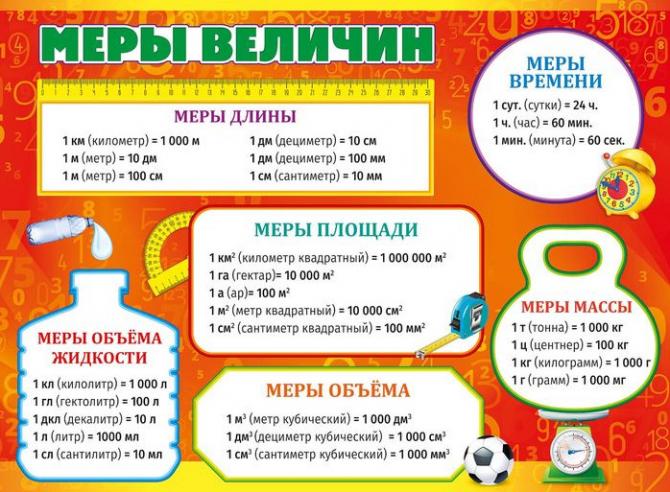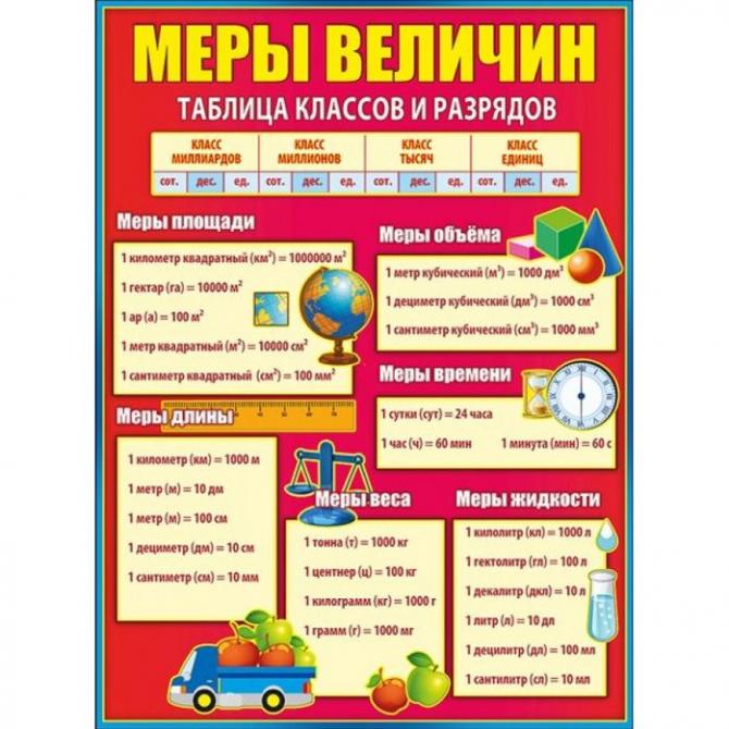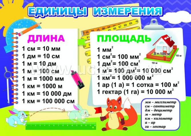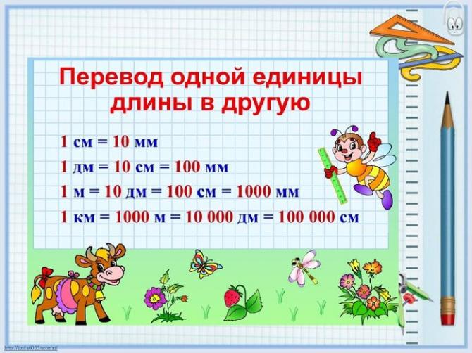 С помощью картинок мер длины можно наглядно объяснить школьнику зависимость перевода из одной единицы в другую. Меры величин начинаются от самого малого измерения, и потом поочередно растут. Для лучшего зрительного восприятия их зачастую изображают в виде таблиц. Примеры рисунков единиц измерения медли, длины, размера и площади глядите в данной статье.
