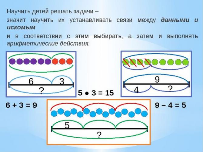 Научить деток решать задачки — значит научить их устанавливать связи между данными и разыскиваемым.