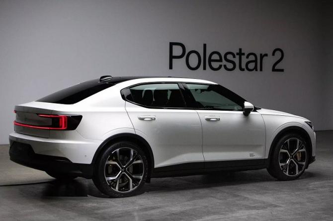 Элегантный электромобиль сзаду.