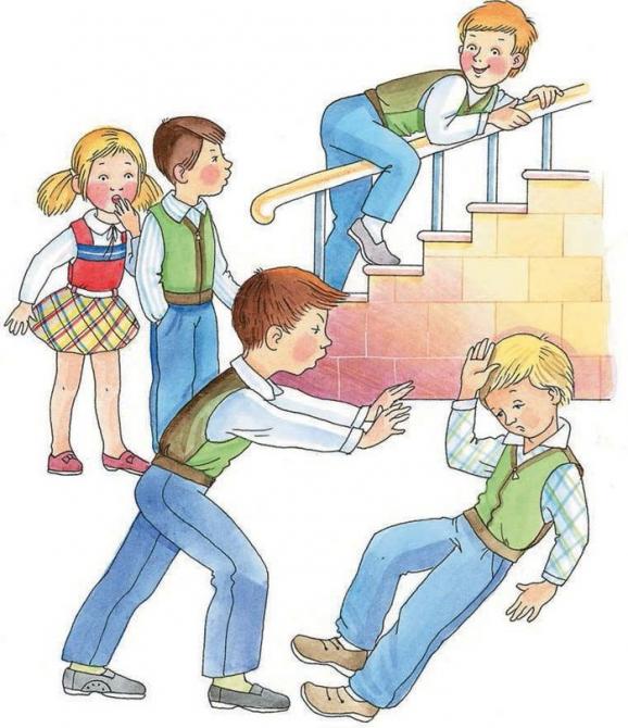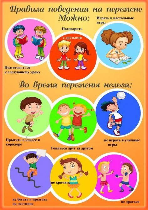 Воспрещается: опаздывать на урок, бегать по коридорам, прыгать по ступенькам, кататься на перилах, толкать друг дружку, кидаться предметами, брать чужие вещи.