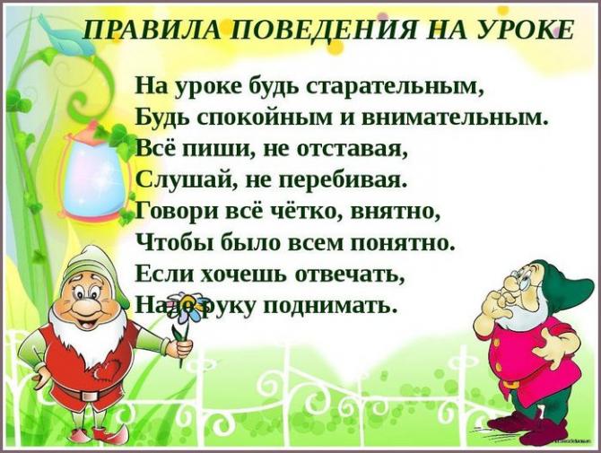 Ответить хочешь — не шуми, а лишь руку подними. На уроках не болтай как заокеанский попугай.