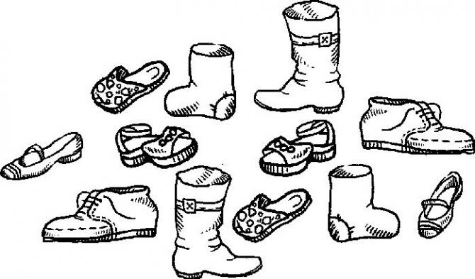 Ребяческие красивые рисунки дублёнки, сандалей и тапочек.