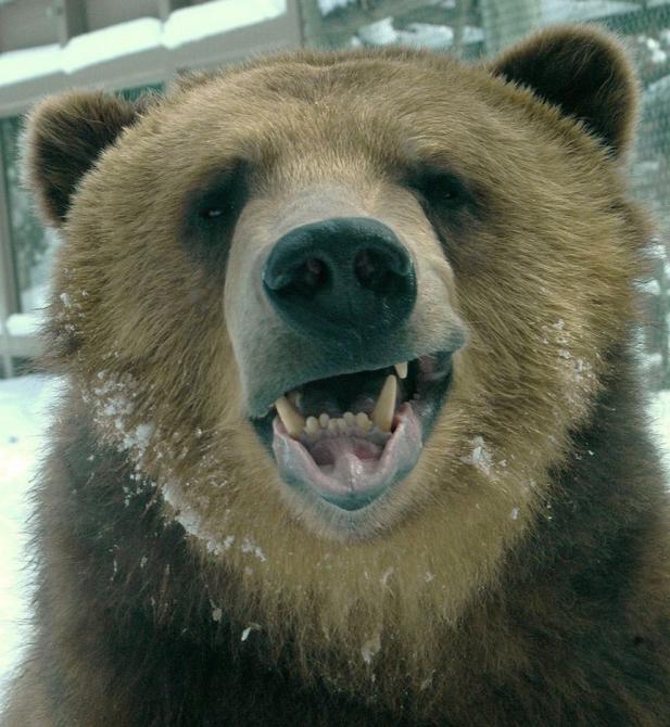 Медведь усмехается.