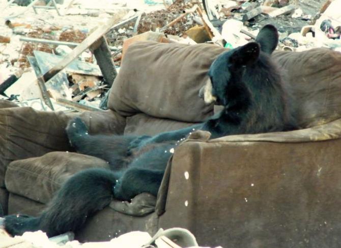 Медведь нашёл диванчик.