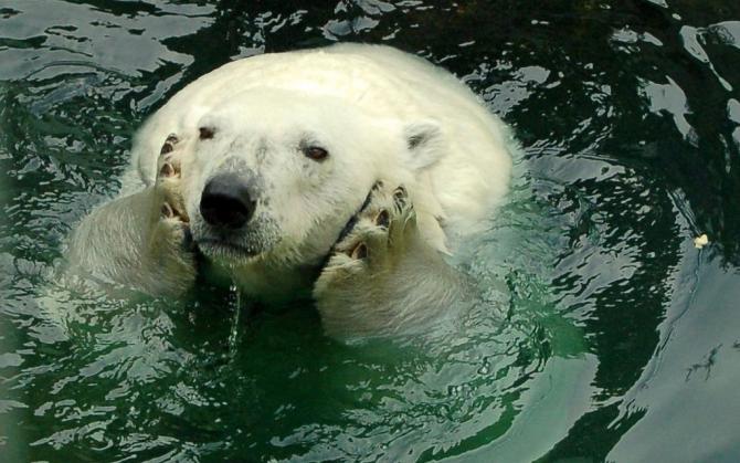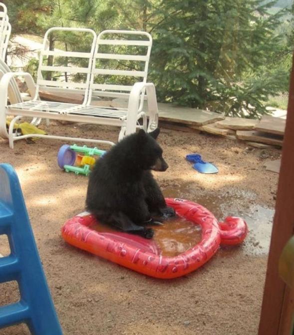Медведь в бассейне.