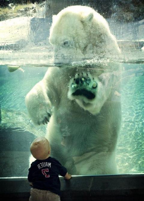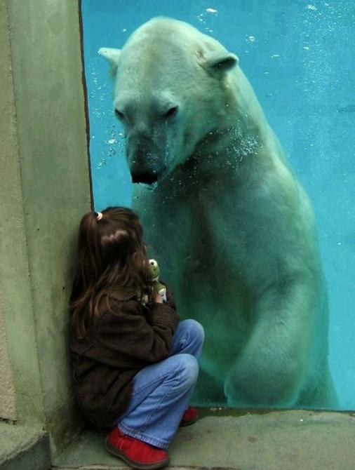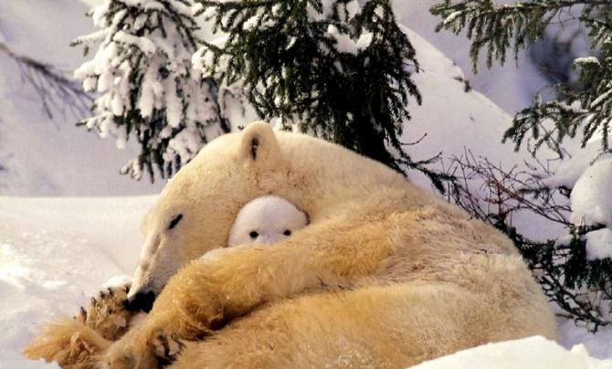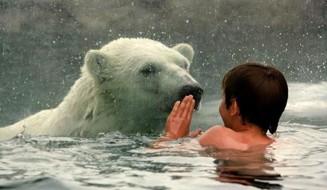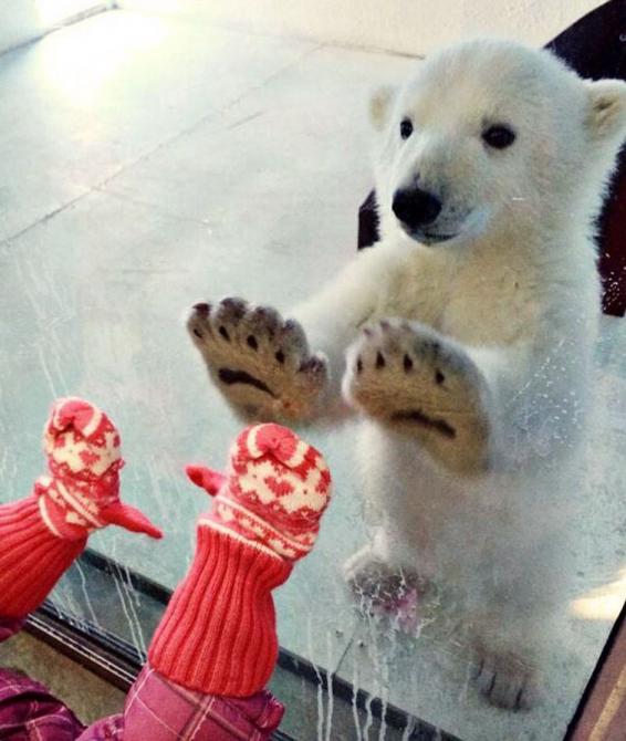 Белоснежный медвежонок нашёл друга.