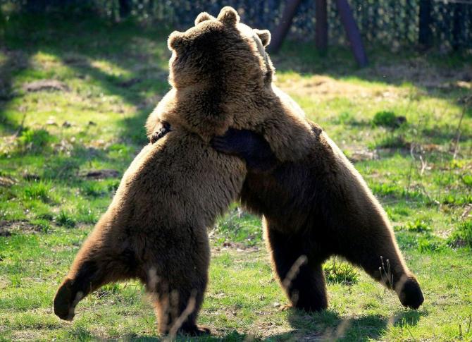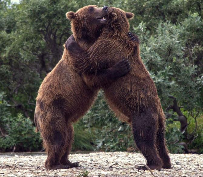 Медведи обнимаются.