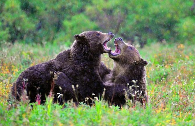 Медведи играют.