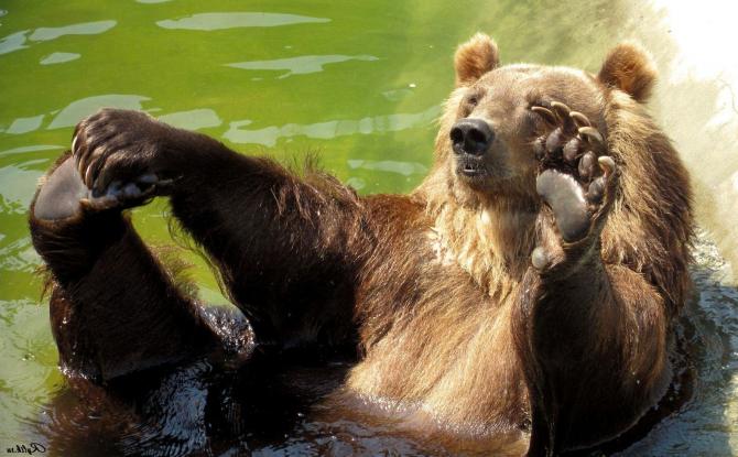 Медведь купается.