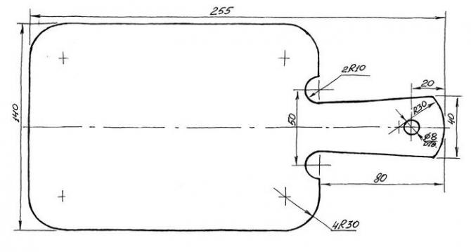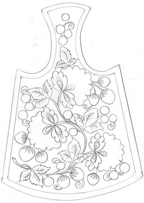 Хоть какой хозяйке в столовой необходимы столовые приборы и кухонная утварь. Разделочная дощечка просто нужна в хозяйстве. Она не совсем лишь спасает стол от порезов, да и служит подставкой, подносом, одним словом всячески помогает кулинару. При всем этом это достаточно обычный предмет в изготовлении. Технический набросок разделочной дощечки, и узорный набросок на неё можно скачать здесь.