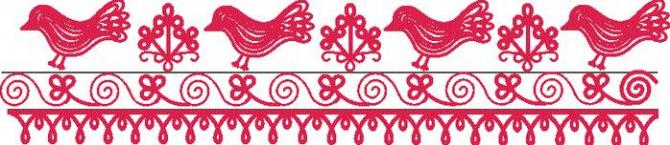 В узорах фермерской вышивки живут удивительные сказочные птицы: здесь и птица — пава с пышноватым хвостом, и птица Сирин и могучий орёл.