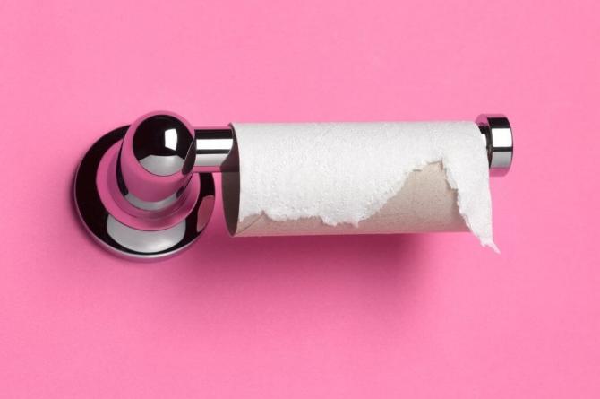 Розовая туалетная бумага.