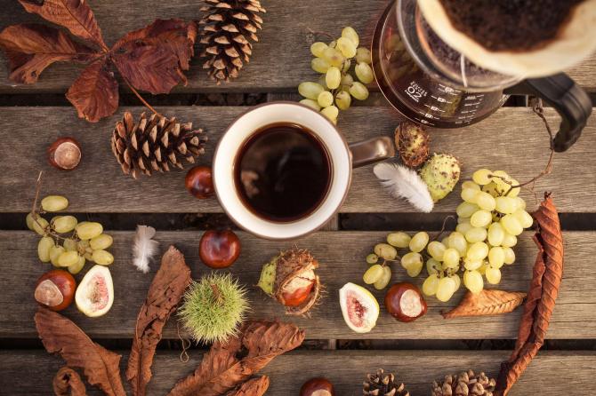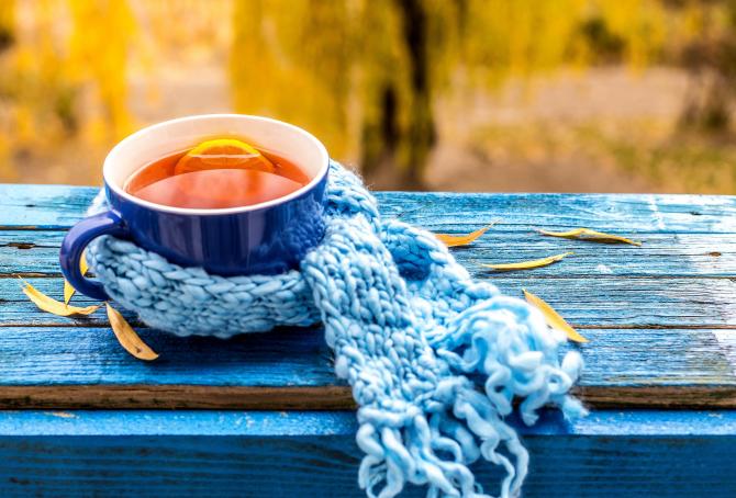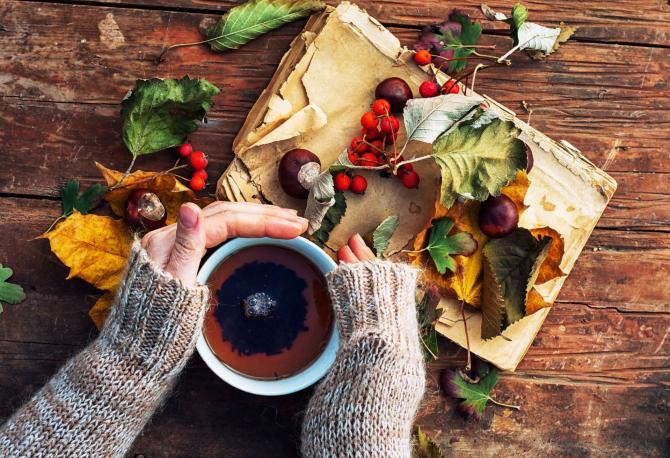 Чашечка ароматного чая осенью.