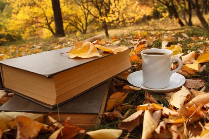 Две книжки на осенних листьях.