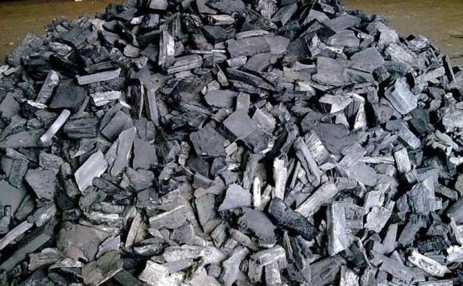 Большие кусочки угля.