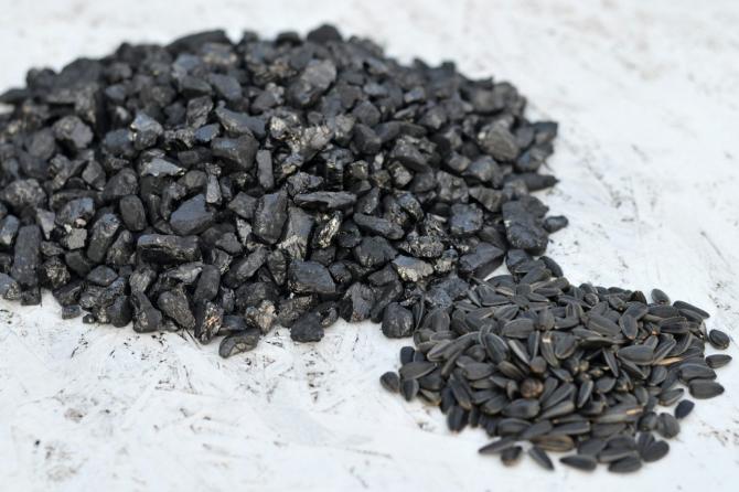 Уголь и семена.