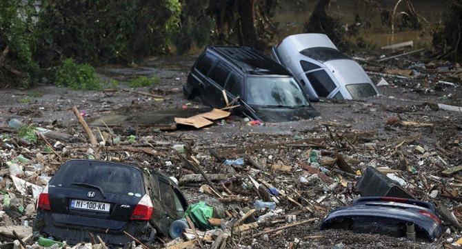 Машины увязли капотами в грязищи и мусоре опосля потопа