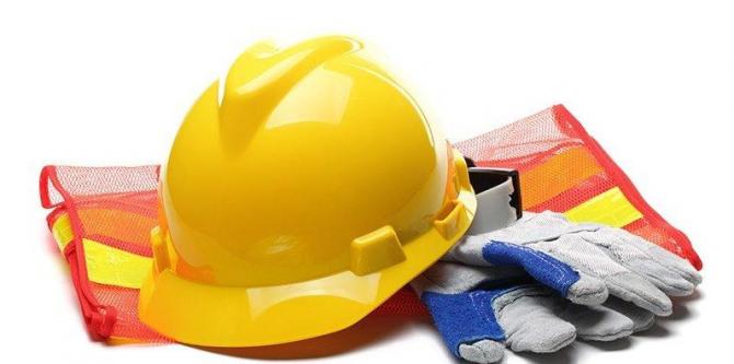 Каска, очки и перчатки