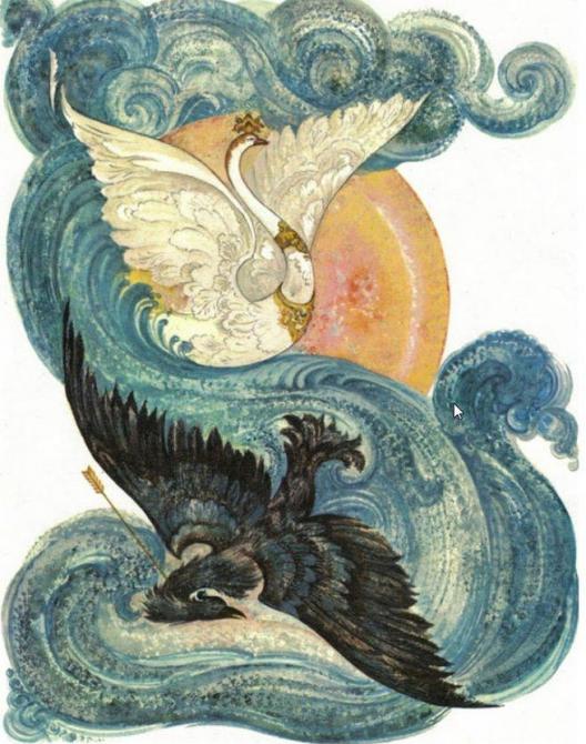 Царевна лебедь — персонаж волшебной басни А.С. Пушкина «Притча о короле Салтане». Героиня наделена благой и отзывчивой душой. Фото картинки из басни ниже.