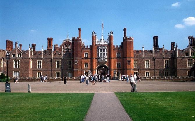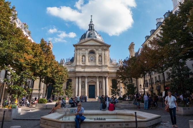 Старинное здание со студентами.