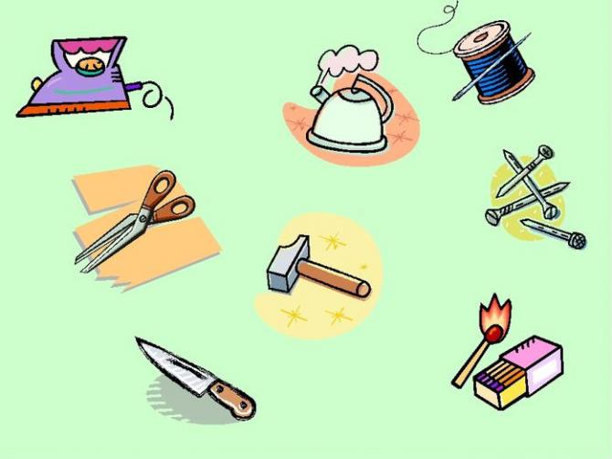 Опасные предметы в быту окружают дошкольника дословно везде. Они достаточно безопасны, ежели их верно использовать и соблюдать технику сохранности. Фото картинки опасных предметов для деток показывают в ребяческом саду, но ответственные предки объясняют своему малышу эти вещи дома.
