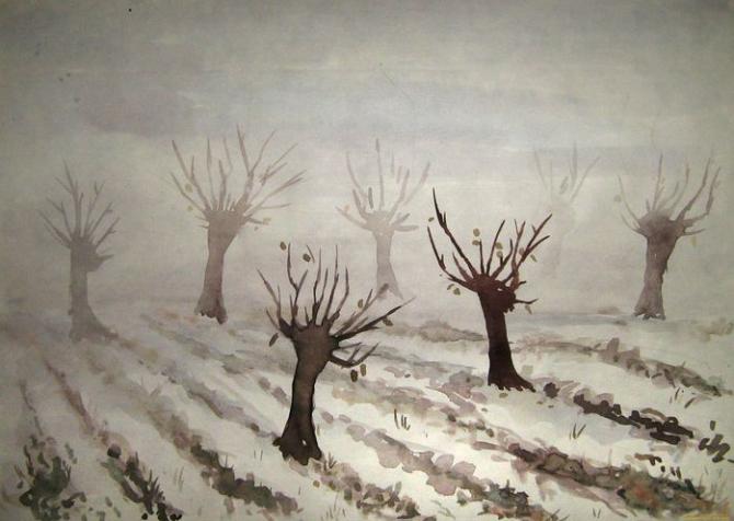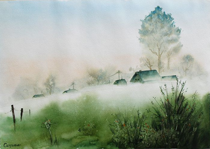 Ребяческие красивые рисунки сада в тумане полны загадочности. Они совершенно не схожи на кадры тумана из кинофильмов, где он выступает по большей доли, как нехороший элемент. Сад в тумане воспитанника 2 класса больше заполнен воздушной нежностью, ежели негативными чувствами.