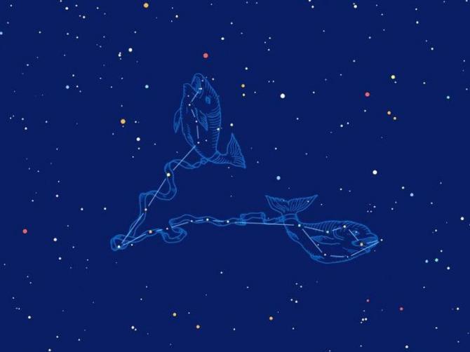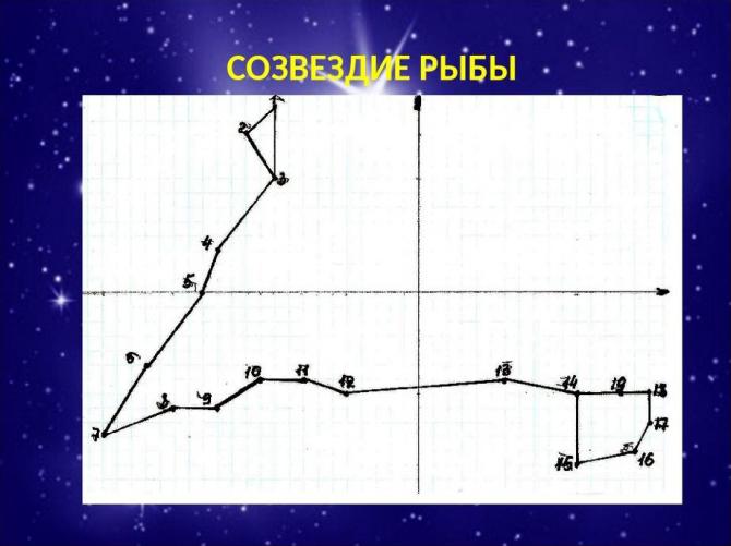 Картина созвездия рыбы с доскональным описанием.