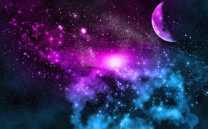 Разноцветная галактика в тёмной вселленой