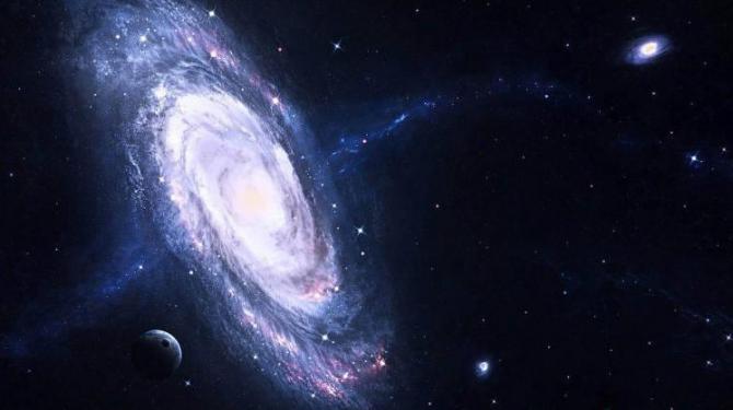 Планета на фоне галактики