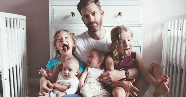 Папа с детками на руках.